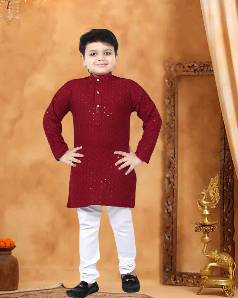 Traditional Threads Full Sleeve Floral Chikankari Embroidered Kurta and Pajama Set for Boys
