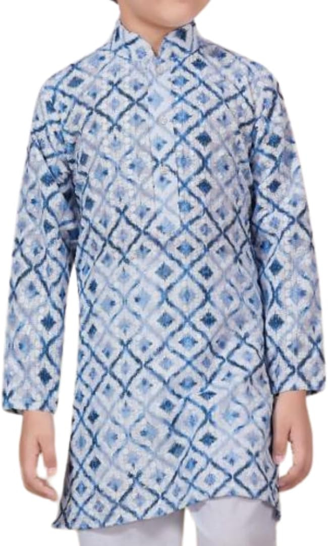 • Comfortable cotton set: Made from breathable cotton fabric, this aqua blue and white ikkat print kurta pyjama set is ideal for keeping your little one comfortable.