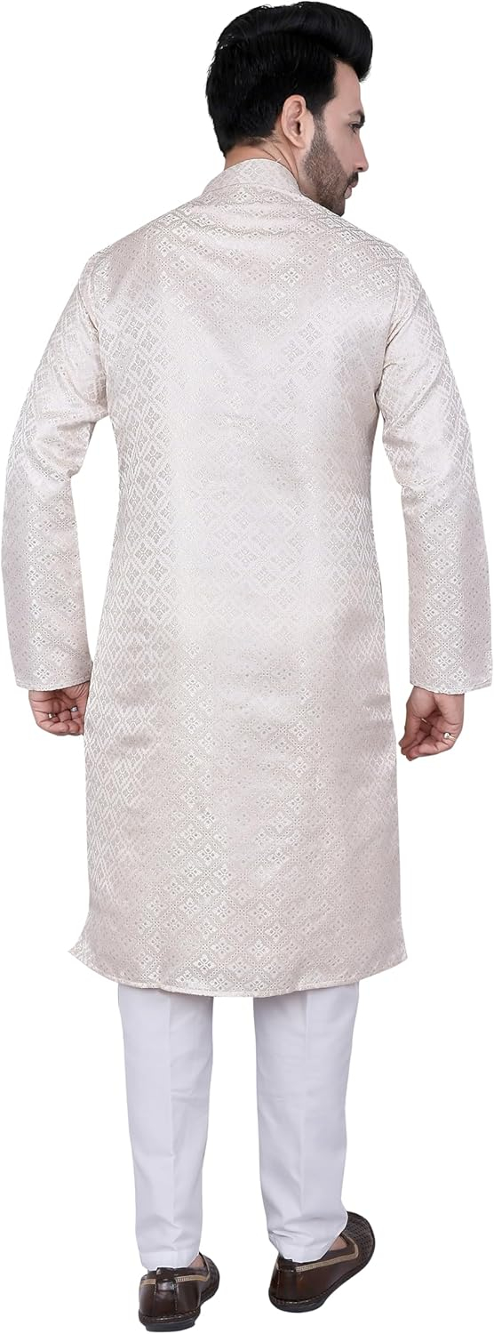• Premium Fabric: Crafted from high-quality materials, the kurta drapes gracefully over the body, offering both comfort and timeless appeal.