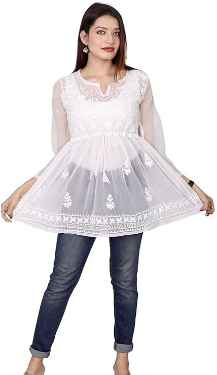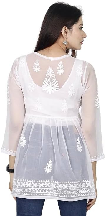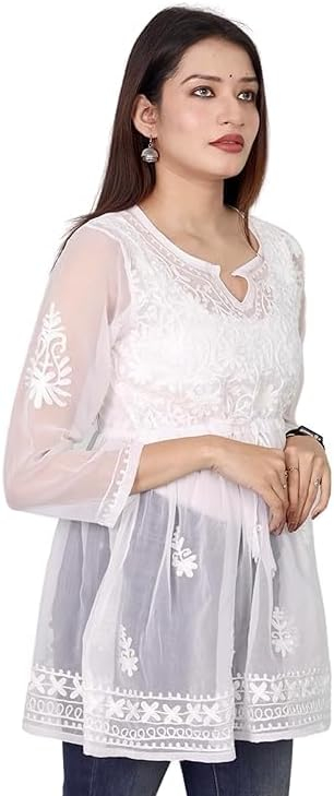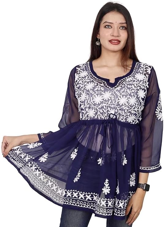 • Detailed Embroidery: Intricate Chikankari embroidery work adorns the front yoke and hem of the tunic, adding traditional Indian elegance.