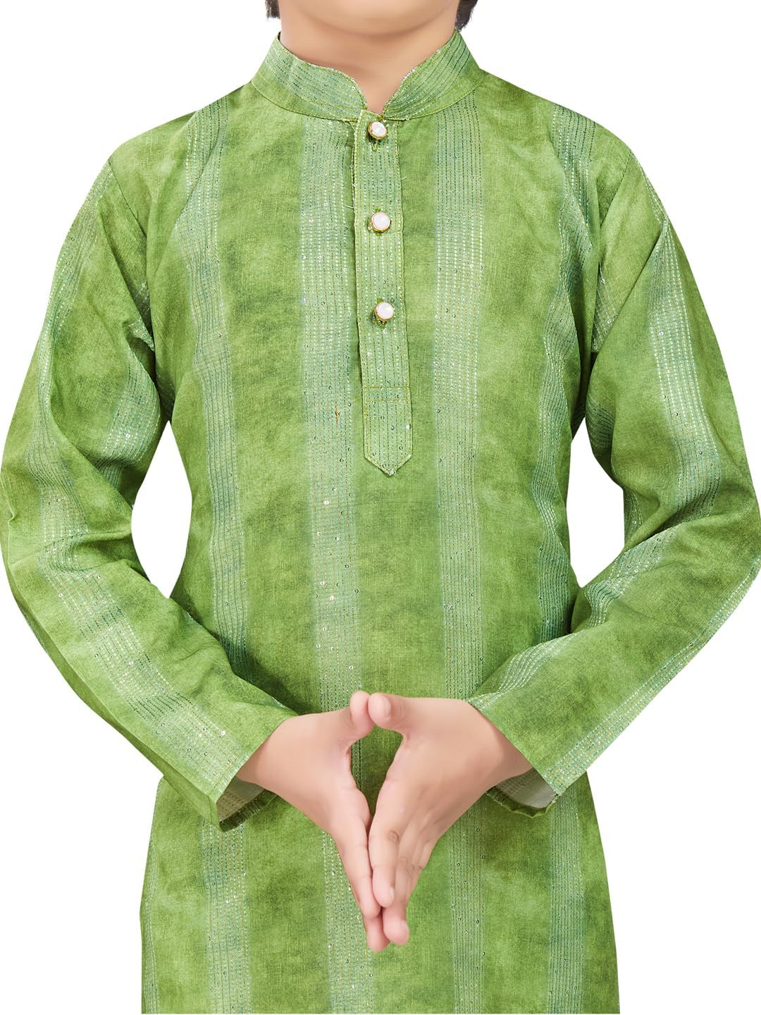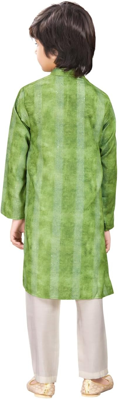 Kurta Pajama for boys, Kids Cotton Pajama Set, Embroidered Green Kurta with White Pajamas