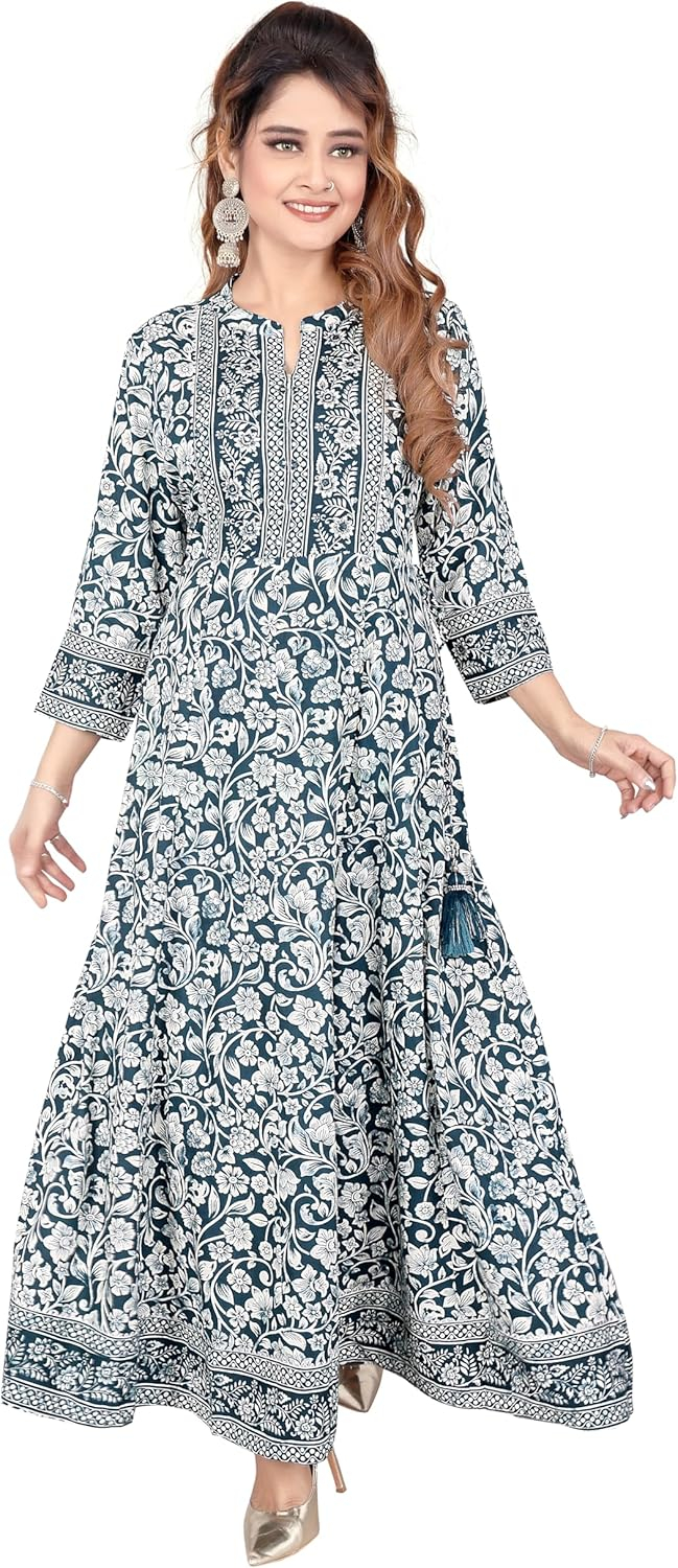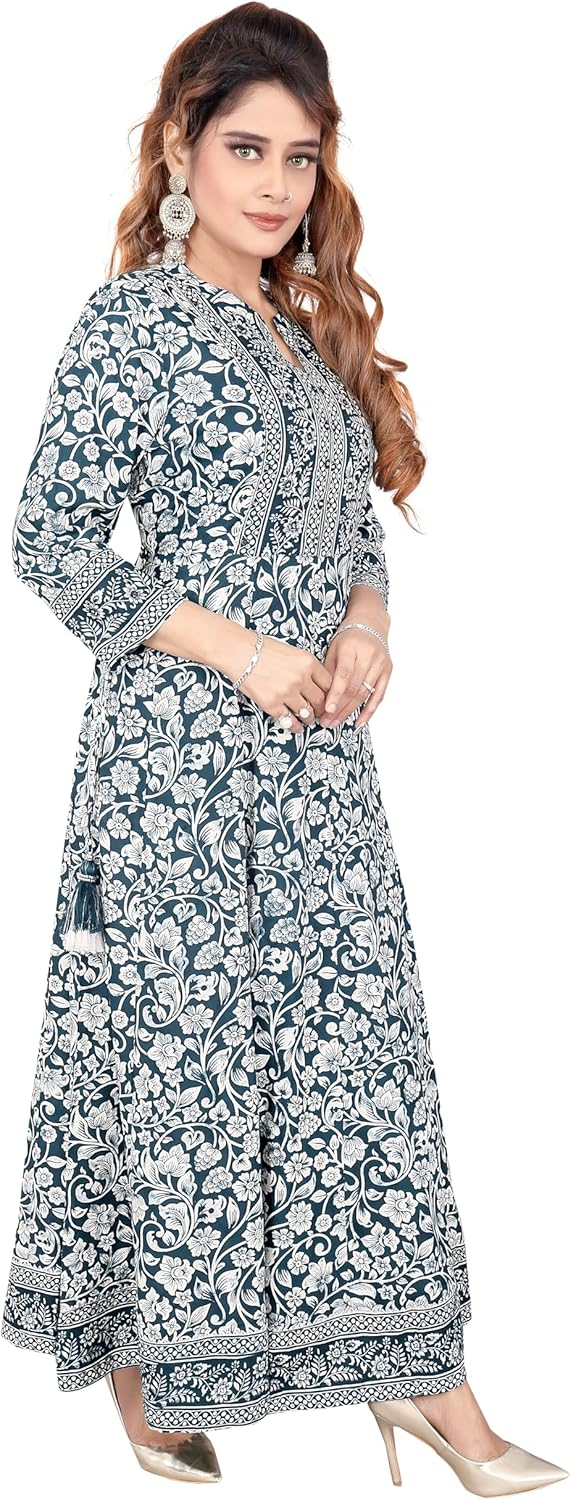 Embrace timeless elegance with this stunning ankle-length Anarkali kurta from Traditional Threads. Crafted from premium viscose rayon, the fabric offers a soft, breathable feel for optimal comfort. The kurta flaunts a captivating black hue adorned with an allover floral print, exuding a chic and captivating look. With its versatile styling, this kurta can effortlessly transition from day to night, making it a wardrobe essential. Pair it with leggings or palazzo pants for a polished ensemble that radiates sophistication. Elevate your traditional fashion game with this exquisite Anarkali kurta.