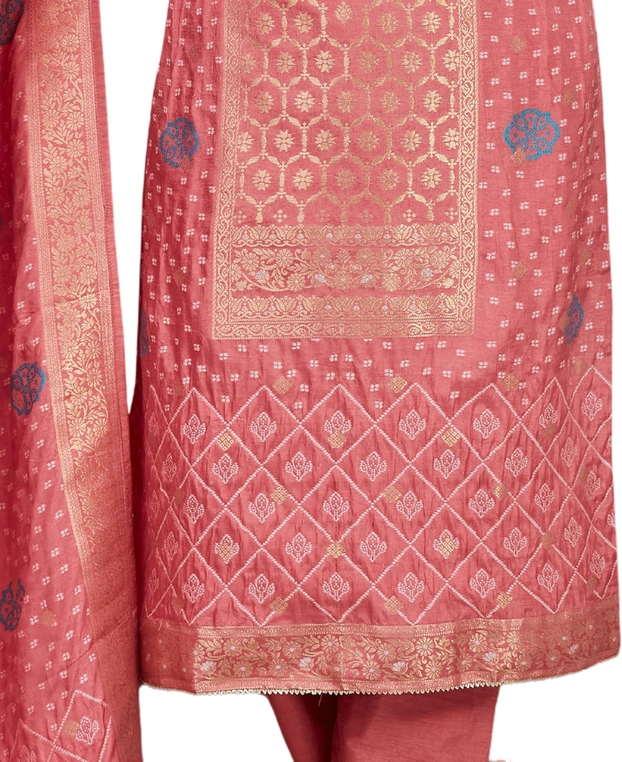 Women's Crape Kurta Set, Pink Floral Print, Includes Kurta, Pants and Dupatta